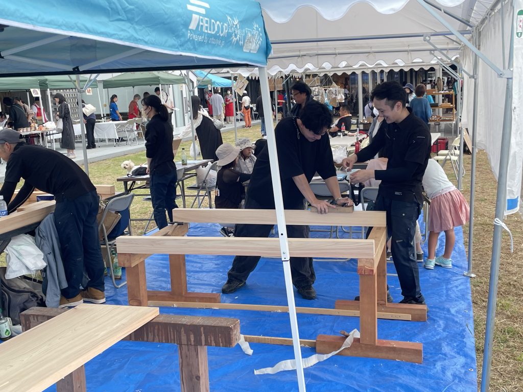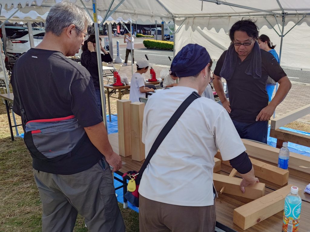 令和7年10月12日(日)、長門おもちゃ美術館にて「木育フェスティバル2025」が開催されました。 おもちゃで遊ぶだけでなく、ワークショップによる体験を通し木の魅力に触れるイベントです。 弊社も「宮大工さんとカンナかけ体験」というタイトルで出展し、カンナ削りや削ったカンナくずを使った缶バッチ作りを体験してもらいました。 また、実際に大工さんが作った模型の展示や道具の実演も行い、子供たちはもちろん大人の方々にも喜んでいただけたようです。